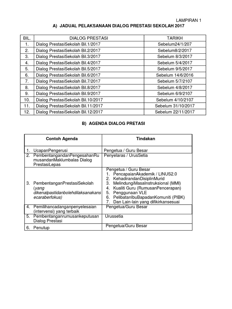 Seperti dalam lampiran Bil Agenda perkara Tindakan makluman 1. Dialog Prestasi Sekolah Bil. Kokurikulum ke 42019 tarikh.